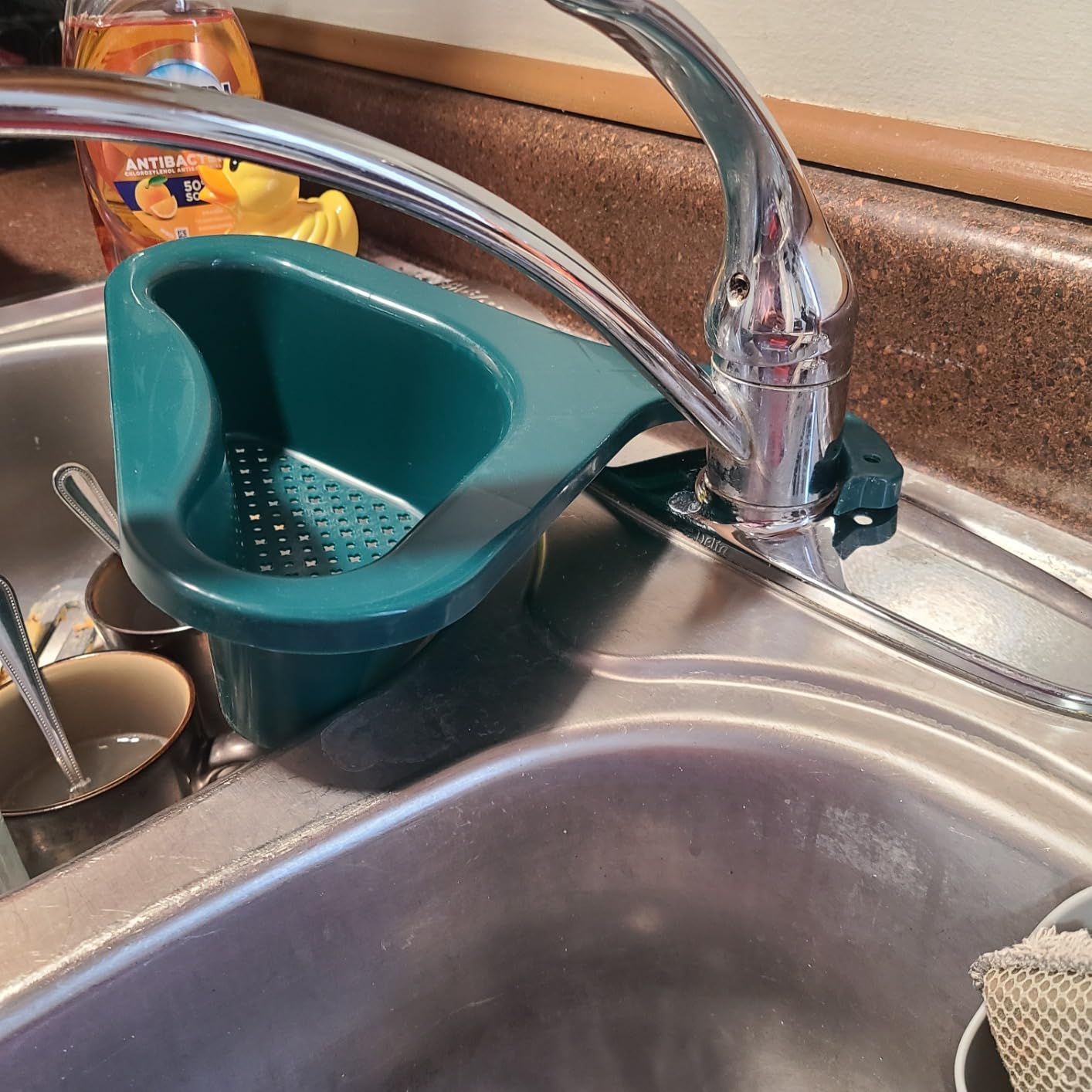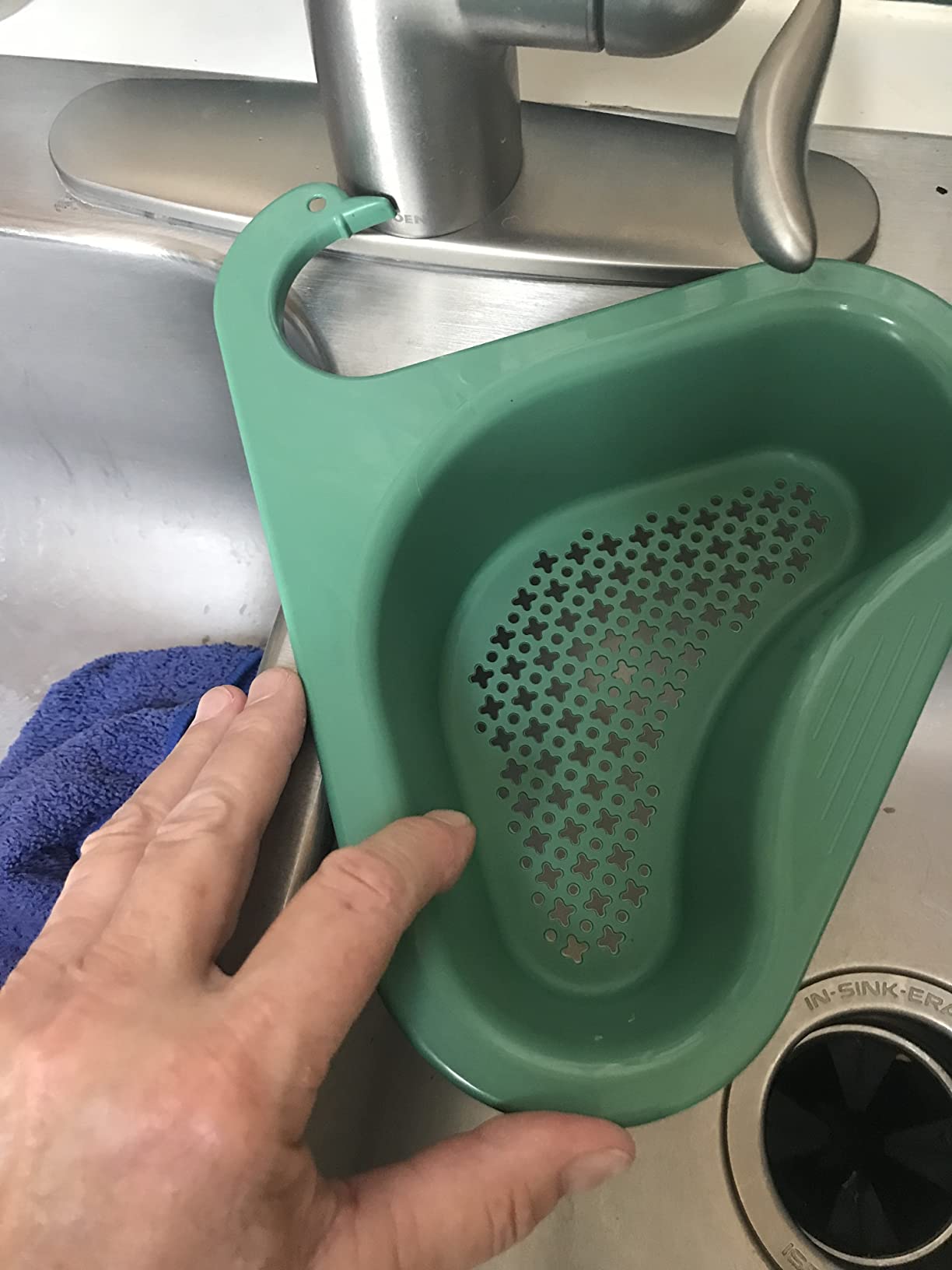 Solo engánchalo al grifo y deja que recoja todo mientras escurres frutas o lavas vegetales, evita meter las manos en comida sucia, y ahorra tiempo cada vez que cocines o limpies.